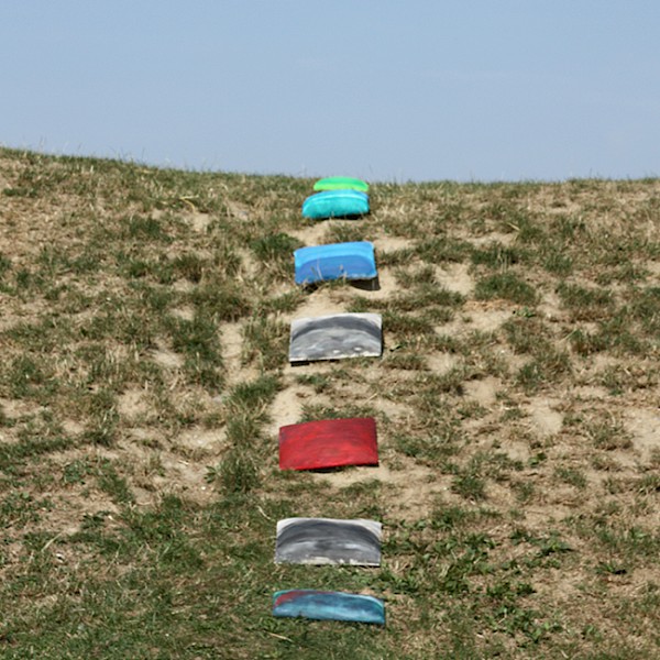 So entstehen im Kurs sowohl Leinwandbilder und Objekte (Farbkörper), als auch eine Fotoserie von den Farbkörpern in der Landschaft.