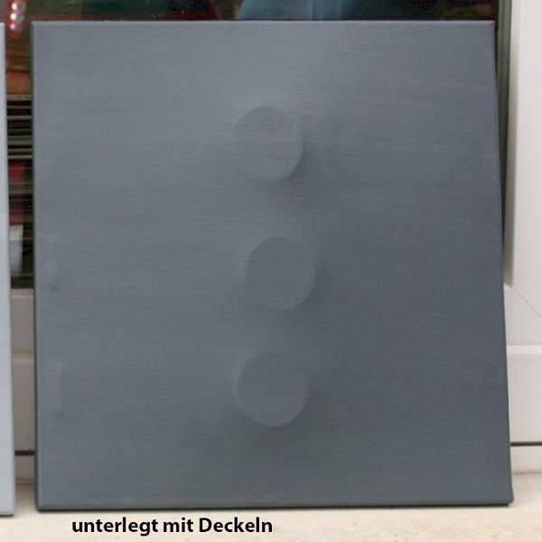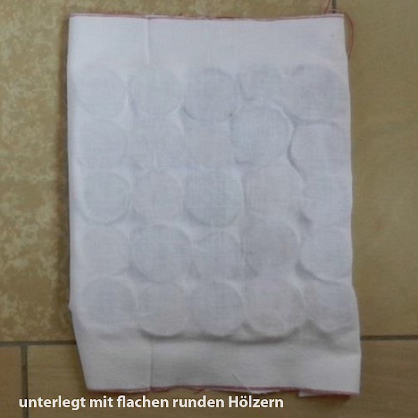 Es wird mit Leinwandstoff auf Holzplatten gearbeitet, die wie Kissen bespannt werden. Außerdem können auch Objekte mit Leinwandstoff bezogen werden.