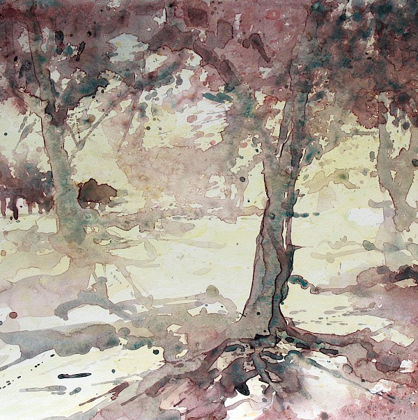 Wir beobachten die Zwiesprache von Farben und Wasser, greifen ein in ihr Zusammenspiel und bearbeiten die Bildoberfläche Schicht für Schicht in verschiedenen Phasen der Trocknung. Wir lösen die Farben immer wieder an, waschen aus und bearbeiten sie auch mechanisch. Wir beschäftigen uns auch mit dem Einfluss unterschiedlicher Papiere, Pinsel, Farben und deren Zusammenspiel.