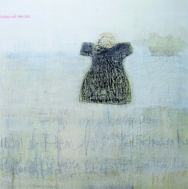Malerisches Arbeiten mit Pigmenten, Gesteinsmehlen und unterschiedlichen Papieren, sowie Wachsguss auf Leinwand und Malplatten im Dialog ausgewählten Kompositionen.