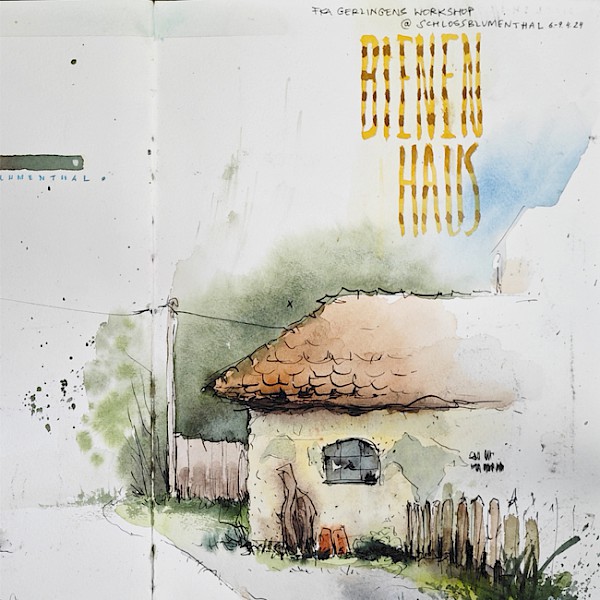 Wir nutzen natürlich die Motive des Ortes Schloss Blumenthal und der Umgebung. Architektur, Tiere, Menschen... Bei gutem Wetter gehen wir draußen skizzieren und arbeiten dann drinnen weiter. Ein absolutes Augenmerk liegt darauf, alle für ein paar Tage in die Welt des Malens (zurück) zu holen und eine gute Zeit zu haben. Auf dass die Skizzenbücher (aquarellfähig) voll mit wundervollen Arbeiten sind...