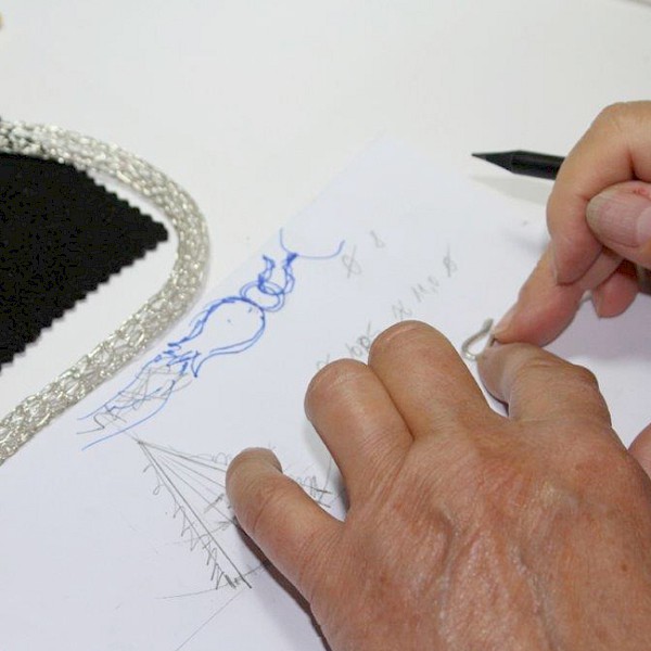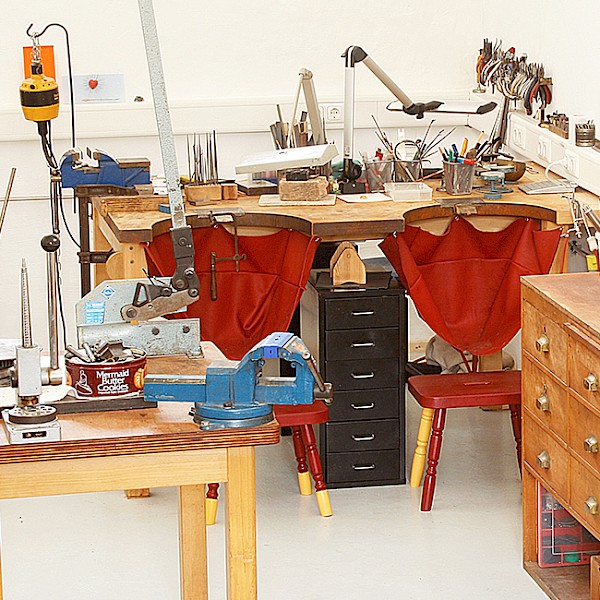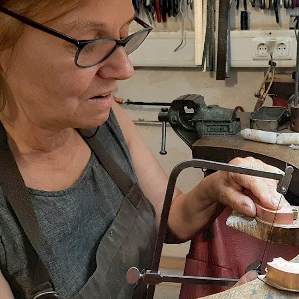 Der erste halbe Tag ist ganz der Ideenfindung und der Entwurfsarbeit gewidmet. Einen zentralen Platz widmen wir dem Thema Edel-Steine, Kieselsteine, Holz, gefundenes oder Mitgebrachtes. Mit diesen Preziosen im Blick entwerfen wir Ringe Armschmuck Ketten, Broschen oder auch Kleinobjekte. Mit den entstandenen Ideen zeichnen und / oder bauen wir Modelle aus Papier oder Folie um die ersten Objekte zu visualisieren. Mit Hilfe dieser Vorarbeit entwickelt jede/r ein bis 2 Arbeiten die in den folgenden Tagen in Metall umgesetzt werden. Wir arbeiten mit Buntmetallen wie Kupfer Neusilber Messing oder auch Sterling Silber. Unser Werkplatz ist die gut ausgestattete Gold und Silberschmiedewerkstatt von Monika Vesely auf Schloss Blumenthal in der wir die entworfenen Stücke in handwerklicher Arbeit realisieren. Dabei kommen grundlegende Techniken der Goldschmiedekunst wie sägen, feilen, bohren oder löten zur Anwendung. Eventuell kommen auch einige Ziertechniken zum Einsatz. Mit maximal 6 Teilnehmer*innen kann sich die versierte Kursleiterin Monika Vesely mit den Einzelnen ausführlich befassen und Alle von der Idee bis zum Ergebnis fachmännisch begleiten.