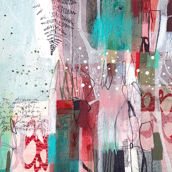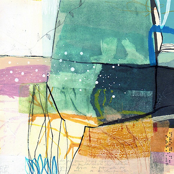 Durch die Schichtung von sehr unterschiedlichen Materialien wie Tusche, Zeichnungen, kreidigen Vereibungen, opaken Farbflächen und Aquarellfarbe entstehen langsame Verdichtungen die einen erzählenden, poetischen Charakter haben. Die Farbe wird gewischt, mit den Fingern verteilt, gedruckt und geschüttet.Die Entwicklung von lebendigen Linien, Rhythmen und einem ganz individuellen Markmaking im Gespräch mit dem negativen Raum ist als abschließender Schritt Thema und Finish der Bilder.