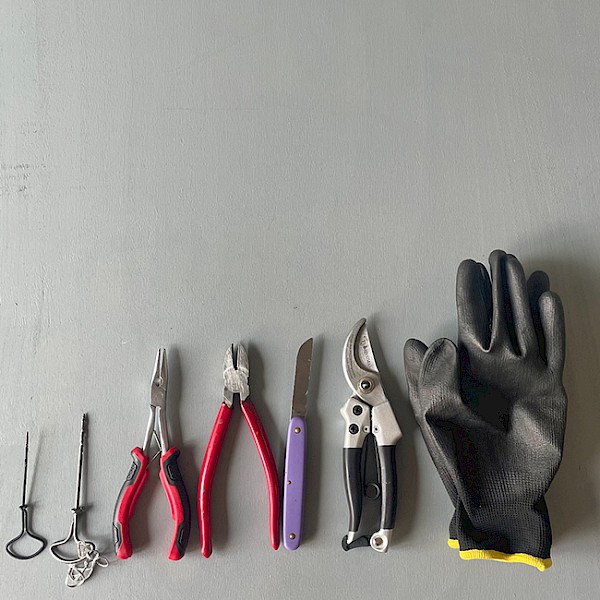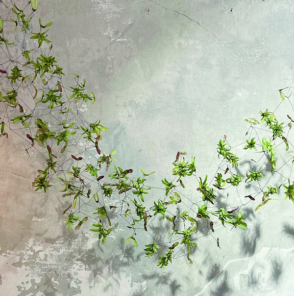 Wir sammeln unsere Werkstoffe rund um Schloss Blumenthal, nehmen Draht als Werkstoff hinzu, und verweben Natur mit Draht zu Werkstücken .